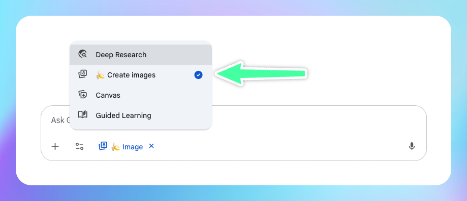 Belangrijk: vink wel het banaantje aan. Anders heb je (misschien) te maken met Google’s voorgaande beeldgeneratiemodel